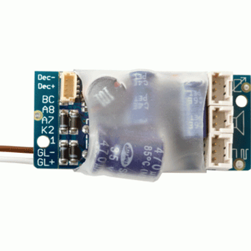 Der eMOTION S Sounddecoder gibt die authentischen Geräusche einer Lokomotive in hochwertiger digitaler Qualität wieder. Hierzu werden Soundaufnahmen direkt am Vorbild vorgenommen und dann im Soundlabor für die Elektronik abgeglichen. Insgesamt steht den eMOTION S Sounddecodern eine Abspieldauer von bis zu 2 Minuten zur Verfügung. Dieses enorme Speichervolumen reicht aus, um den Sounddecoder mit diversen Zusatzsounds in hoher Qualität zu versehen. Zur Ausgabe des Sounds dient eine leistungsstarke 3 Watt Endstufe.